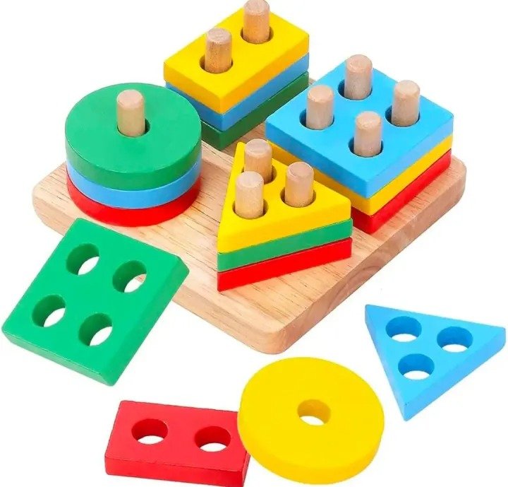 4 Column Wooden Blocks Geometry Shapes Matching A-10