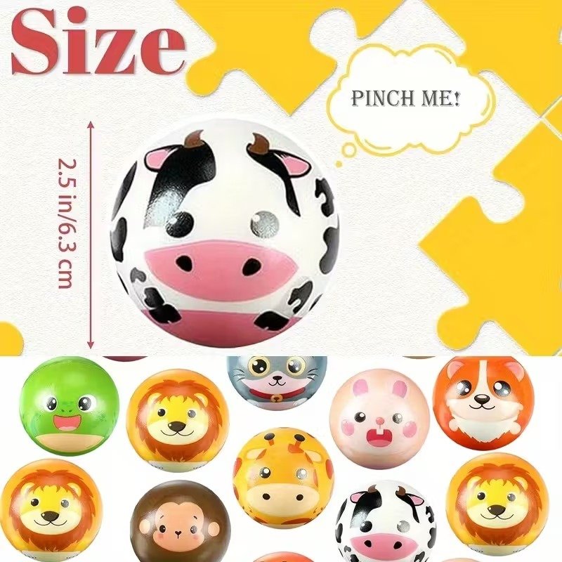 Cartoon Animal Squeeze Balls – Soft, Durable, 6.3cm Diameter, Colorful Designs (Tiger, Lion, etc.), Perfect for