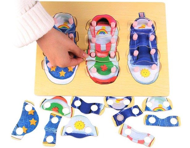 wooden shoe lacing puzzle boardWooden Shoe Lacing Puzzle Board