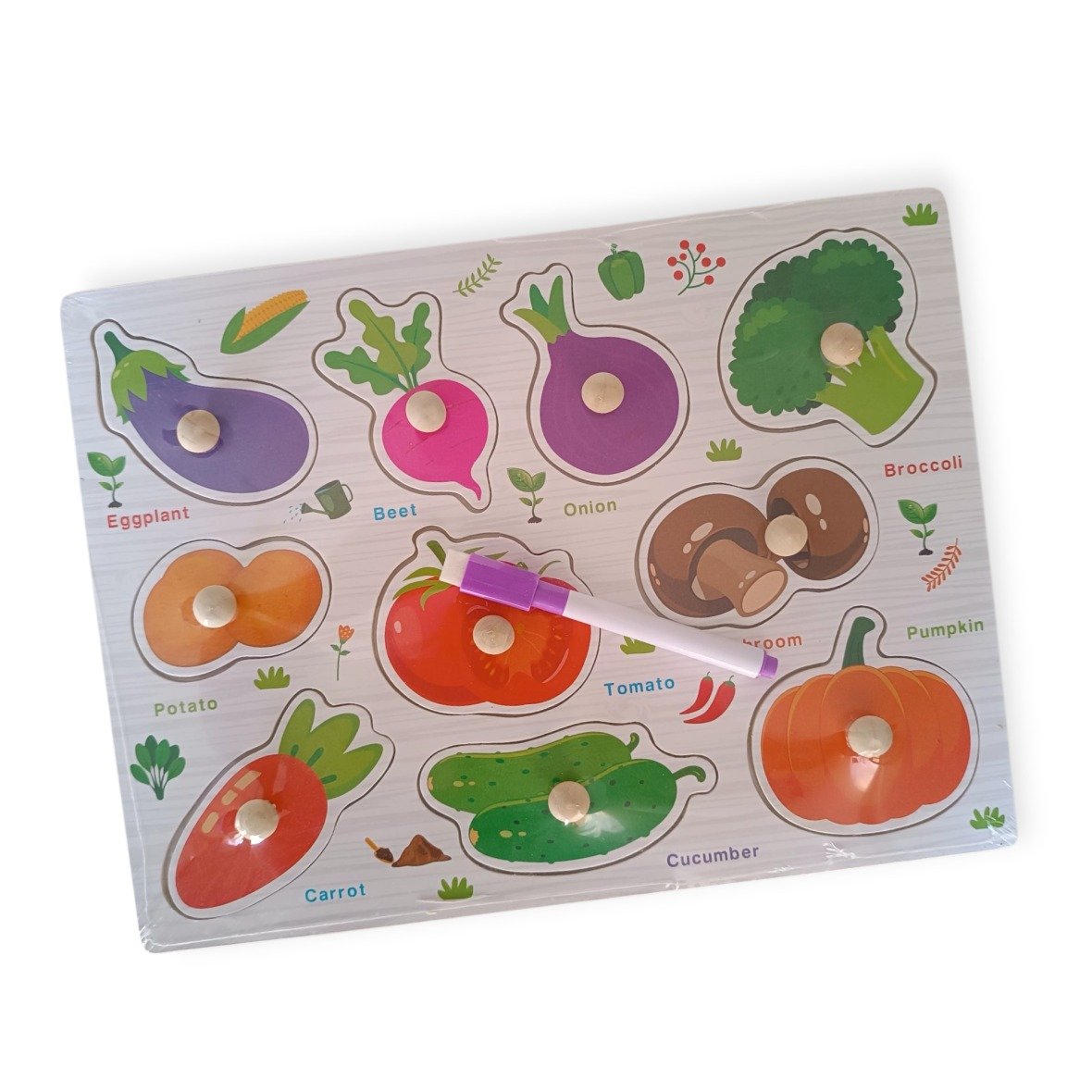 Wooden Vegetables Knobbed Puzzle Board with White Board